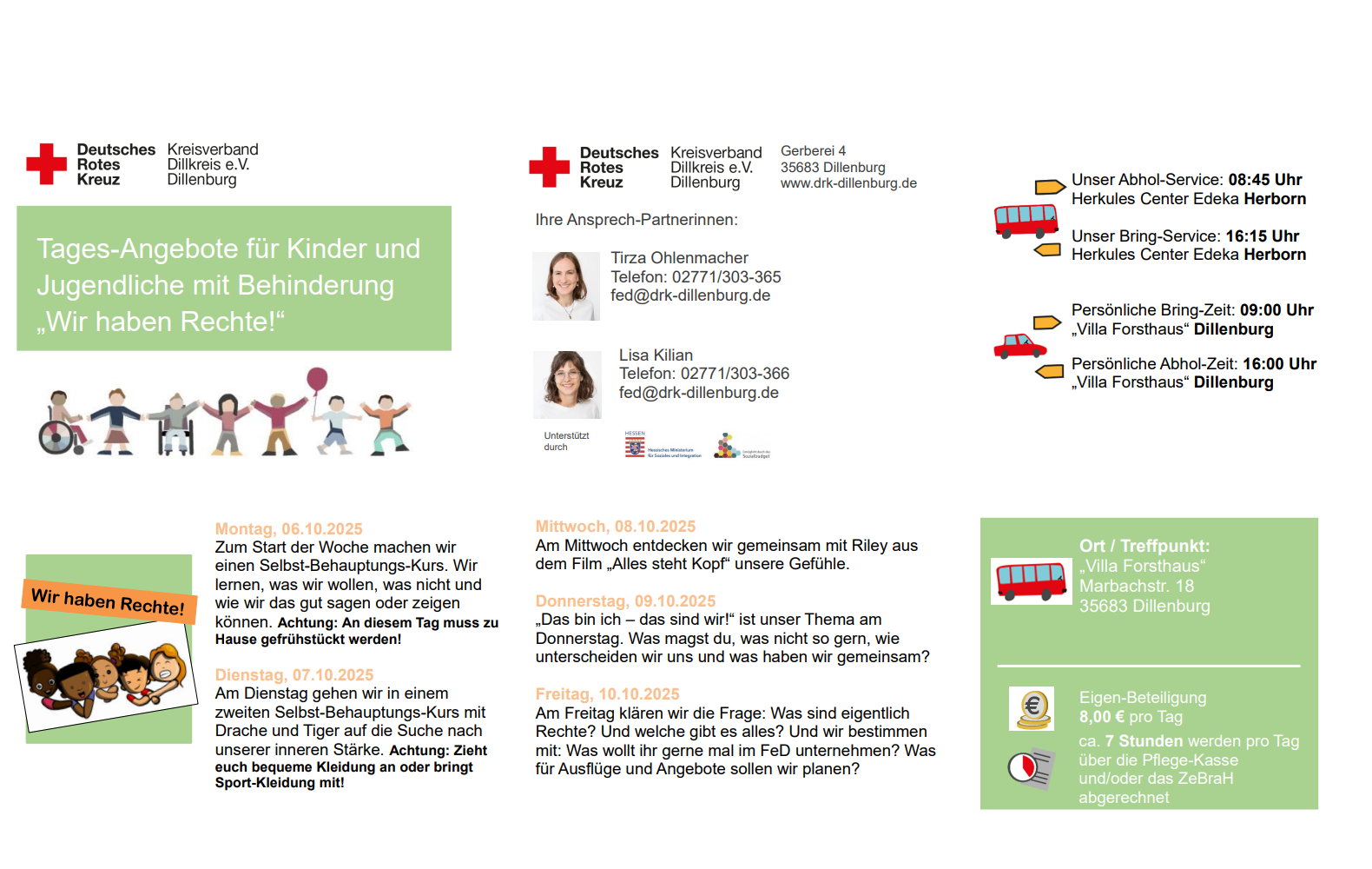 - Freitagsgruppe für Kinder und Jugendliche mit Behinderung von 11:30 - 17:00 Uhr (mit Abholung von der Otfried-Preußler-Schule in Dillenburg und der Schule am Budenberg in Haiger)